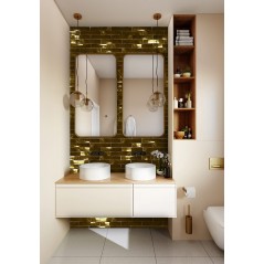 Los azulejos Golden añaden lujo y elegancia a cualquier espacio. Hechos en cerámica de pasta blanca con impresión digital y disponibles en formatos de 13x13 y 5x25 cm, su acabado en oro brillante refleja la luz para crear un ambiente sofisticado. Fáciles de limpiar y resistentes a la humedad, son perfectos para baños modernos y llenos de estilo.