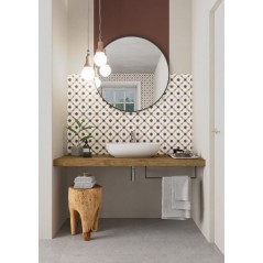 GRACE reinterpreta la tradicional baldosa hidráulica con un diseño modular continuo. Su diseño ecléctico y cautivador, basado en un patrón repetido de motivos estilizados, permite crear superficies infinitas que aportan un gran valor al interiorismo contemporáneo.