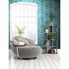 Colección de cerámica decorativa en pasta blanca, en formato de escama de pez, con una atractiva gama de colores como azul turquesa, azul denim, blanco, taupe y azul claro. Este formato permite crear impresionantes decoraciones en paredes, combinando la belleza de la tradición con un estilo actual.